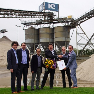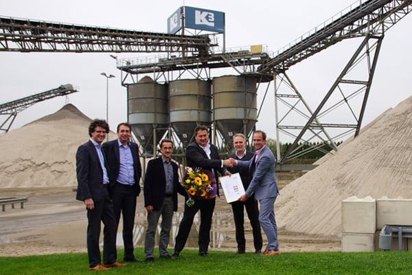 Dammy Evertse, Director of Aggregates with K3Delta, received the certification from the hands of Arjan van der Drift (Kiwa), Stefan van Uffelen (CSC), Marie van der Poel and Remco Kerkhoven (both VOBN) on November 9. VOBN (Vereniging van Ondernemingen van Betonmortelfabrikanten in Nederland) is the Regional Scheme Operator (RSO) and representative for CSC in the Netherlands. Kiwa is the certification body. Both are founding partners of CSC. Increasing value for concrete producers