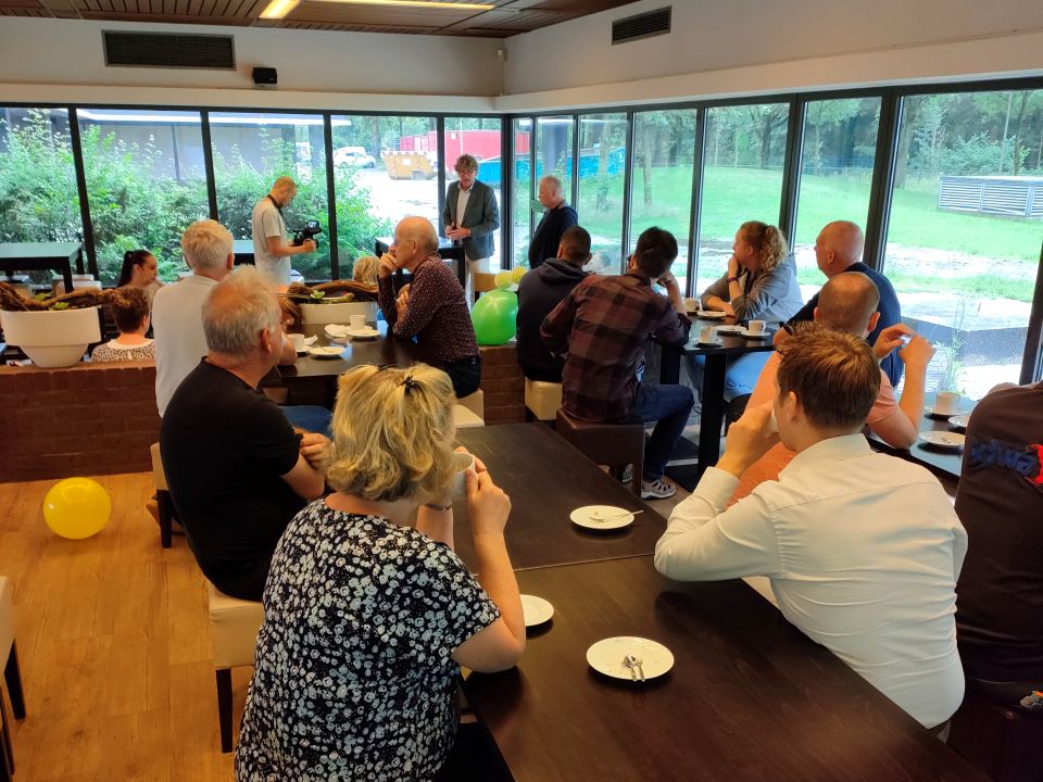 Op dinsdag 6 juli jl. was onze collega Hans Buurman, unitmanager Testing Materials, maar liefst 40 jaar in dienst bij Kiwa KOAC. Uiteraard hadden we graag een receptie georganiseerd om dit samen met klanten en collega’s te vieren, maar helaas was dit vanwege corona niet mogelijk. Toch wilden we Hans op deze dag graag in het zonnetje zetten middels een mooi alternatief. Na een gezellig ontbijt samen met Ties Joosten werd Hans opgehaald in een mooi versierde meetwagen van Road Testing en naar Kiwa Apeldoorn gebracht. Daar stonden de collega’s van de unit Testing Materials hem al op te wachten. Binnen waren ook de andere collega’s van Kiwa KOAC Apeldoorn aanwezig en samen hebben we genoten van koffie met gebak.